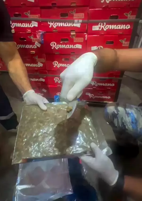 Kinoloji xidmət itinin tətbiqi ilə həyata keçirilən yoxlama zamanı bir ədəd paletdəki kahı yüklü yeşiklərin alt hissəsindən gömrük nəzarətindən gizlədilən 34 ədəd bağlamada, ümumi təqribi çəkisi 30 kiloqram 599 qram narkotik vasitə - marixuana aşkar edilib.