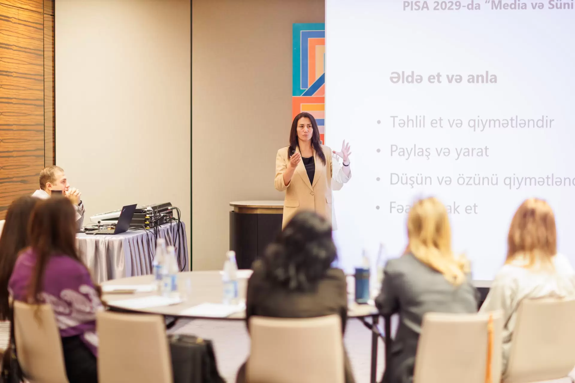 “Təhsildə media savadlılığı: beynəlxalq təcrübə və yerli tətbiq perspektivləri” mövzusunda çıxış edən Elm və Təhsil Nazirliyinin Məktəbəqədər və ümumi təhsil şöbəsinin müdir müavini Nəriman Qəhrəmanlı və Azərbaycan Respublikası Təhsil İnstitutunun Dil fənlərinin proqramları şöbəsinin müdiri Turan Zəkəriyayeva qeyd edib ki, müasir dövrdə informasiya bolluğunun mövcudluğu bu məlumatları istehlak edən şəxslər üçün bir sıra ciddi risklər yaradır. Yeniyetmələrin, məktəblilərin həssas auditoriya olduğu nəzərə alınaraq, onların doğru və yalan informasiyanı ayırd etmə bacarıqlarının inkişaf etdirilməsi, eləcə də məsuliyyətli və səriştəli media istehlakçısı və iştirakçısına çevrilməsi məqsədilə media savadlılığının artırılması xüsusi əhəmiyyət daşıyır.