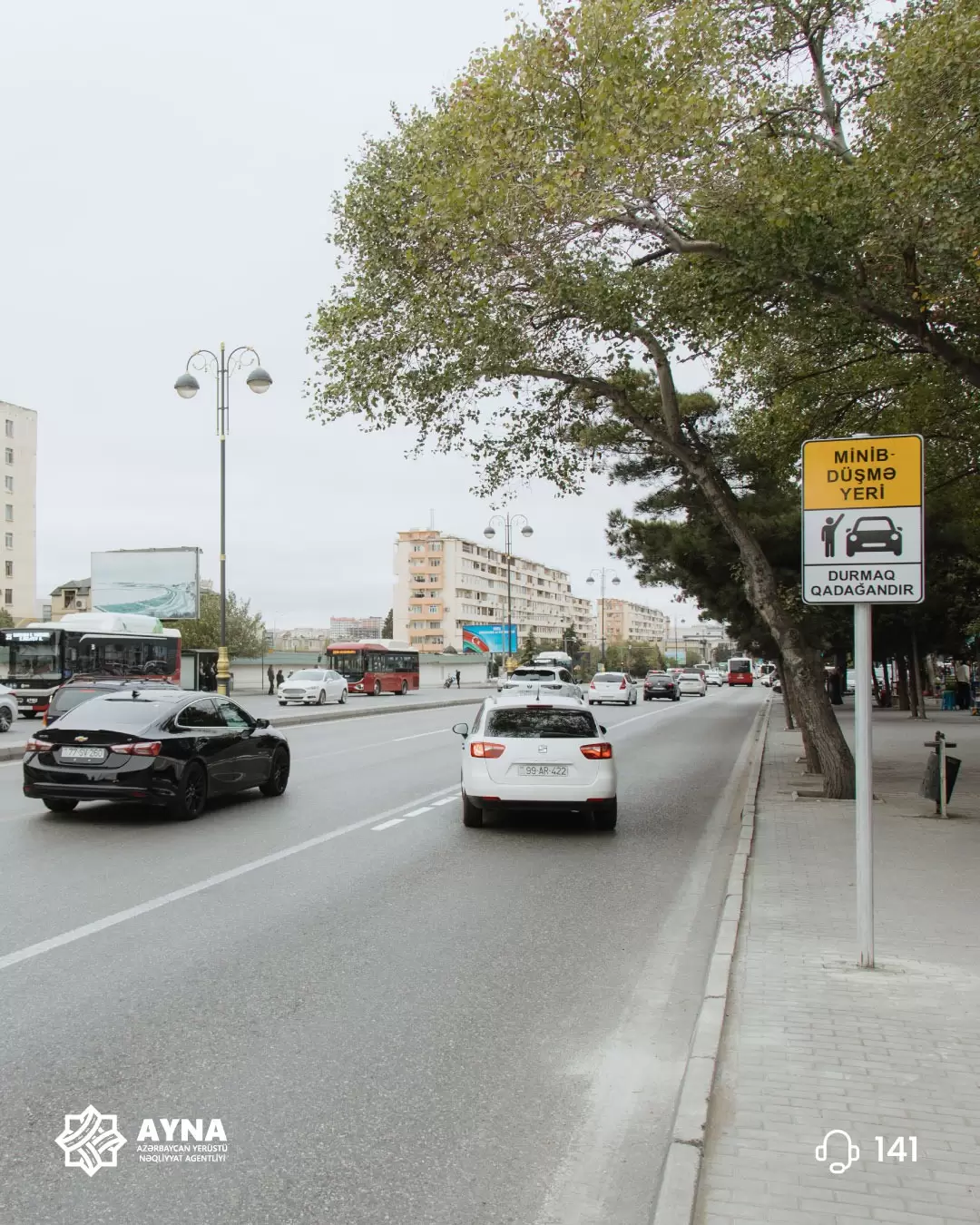 AYNA tərəfindən avtobus zolaqlarında minik avtomobillərinin sərnişinləri rahat şəkildə mindirib-düşürməsini təmin etmək məqsədilə Nizami rayonunun Qara Qarayev prospektinin üç ünvanında – “8-ci kilometr bazarı”nın qarşısında, “Neftçilər” və “Xalqlar dostluğu” metrostansiyalarının çıxışında, eləcə də Nəsimi rayonunun Füzuli küçəsindəki "Azərdövlətlayihə" Dövlət Baş Layihə İnstitutunun qarşısında xüsusi yerlər yaradılıb və müvafiq lövhə yerləşdirilib.