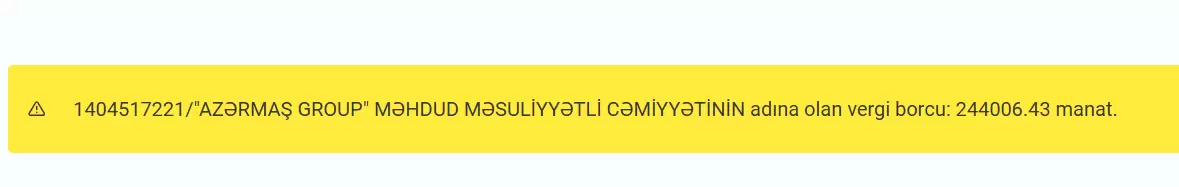 “Azərmaş” ASC, “Azərmaş” MMC, “Azərmaş Park” MMC, “Azərmaşavadanlıq” ASC, “Azərmaş sənaye” MMC, “Azərmaş trade” MMC, “Azərmaş Lizinq” MMC, “Azərmaş Avtoservis” MMC, “Azərmaş Pro” MMC və “Azərmaş auto” MMC-nin isə vergi borcu yoxdur.