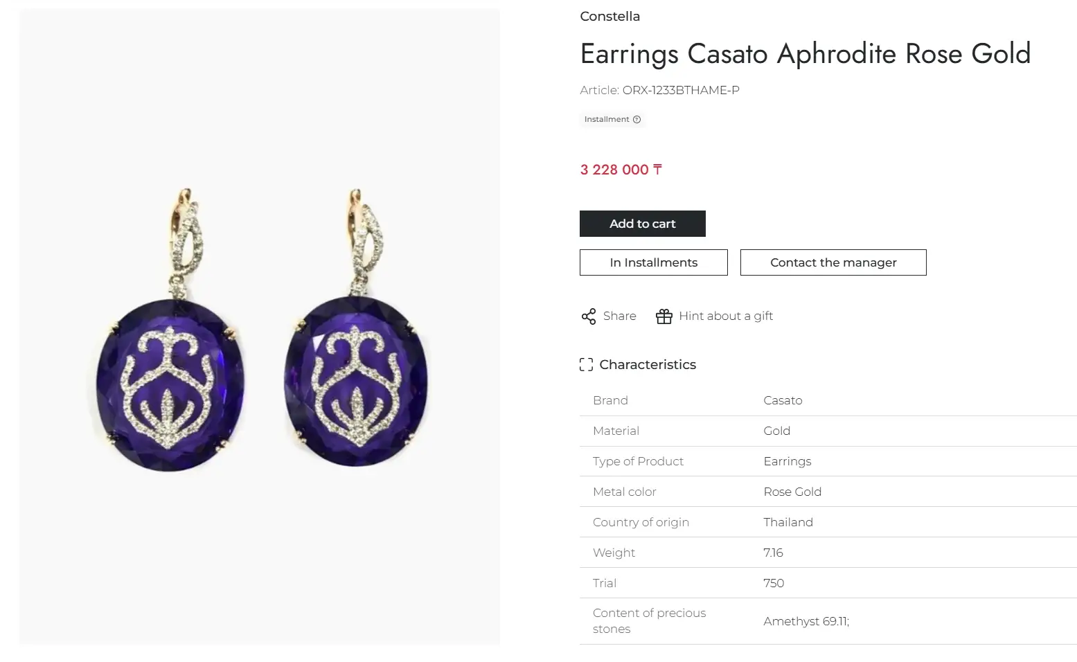 Hakopyan İtaliyanın "Casato" brendinin "Aphrodite" kolleksiyasına aid zinət əşyalarından istifadə edir. İnternetdəki məlumatları araşdırarkən məlum olub ki, sırğaların qiyməti təxminən 2,5 milyon dram (11 193 manat), boyunbağının qiyməti 3,5 milyon dram (15 670 manat) və üzüyün qiyməti isə təxminən 2 milyon dramdır (8 954 manat).