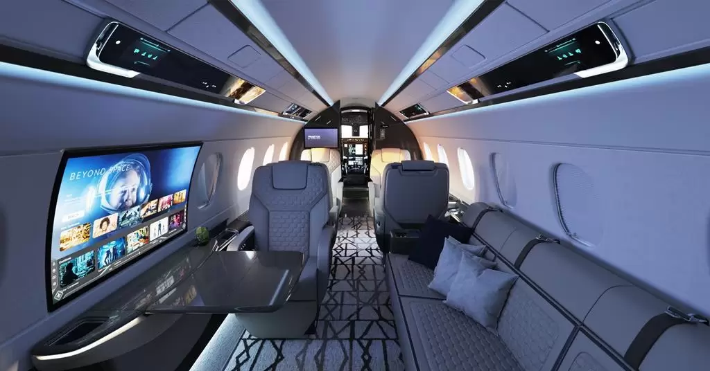 "Embraer" standart pəncərələri çox darıxdırıcı hesab edərək onları 42 düymlük əyri OLED ekranlarla əvəzləyib və lüks biznes təyyarəsini “səmada ağıllı ev”i xatırladan yüksək texnoloji məkana çevirib.