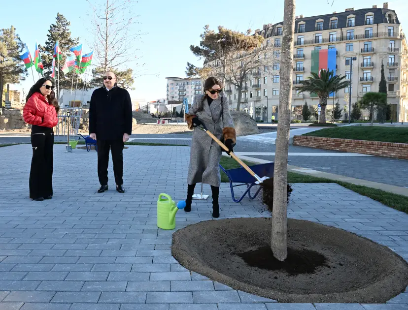 Prezident İlham Əliyev, birinci xanım Mehriban Əliyeva və qızları Palıd meydanı parkında ilk palıd ağacını əkdilər.