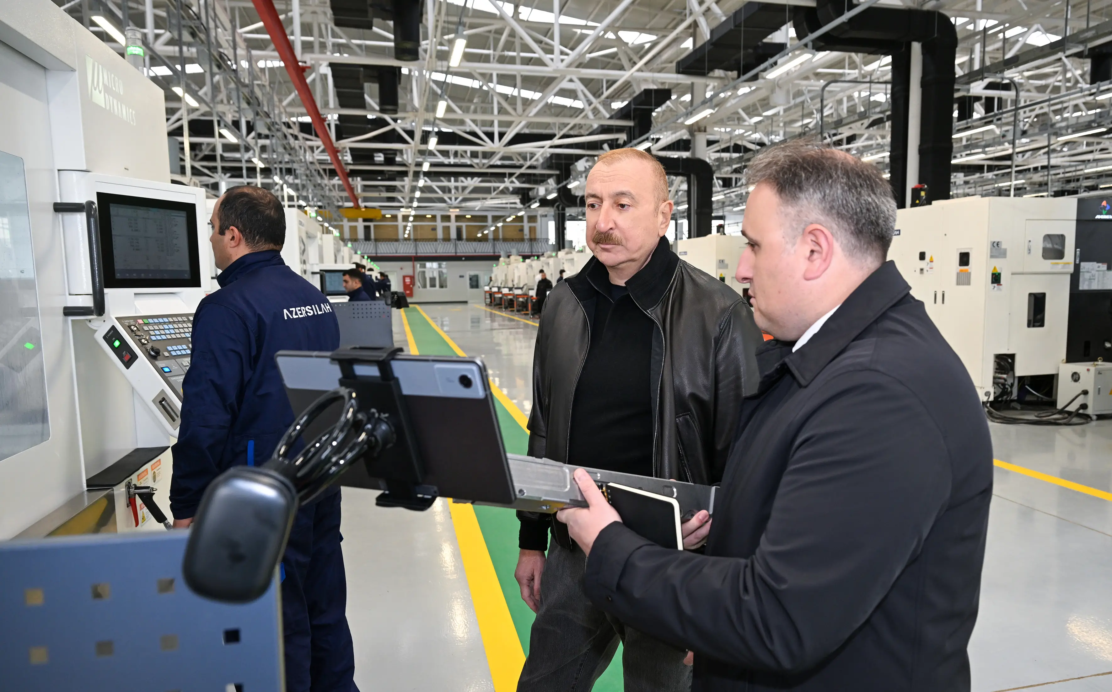"PostMedia" xəbər verir ki, dövlətimizin başçısı əvvəlcə Ulu Öndər Heydər Əliyevin zavodun həyətində ucaldılmış büstü önünə gül dəstəsi qoydu.