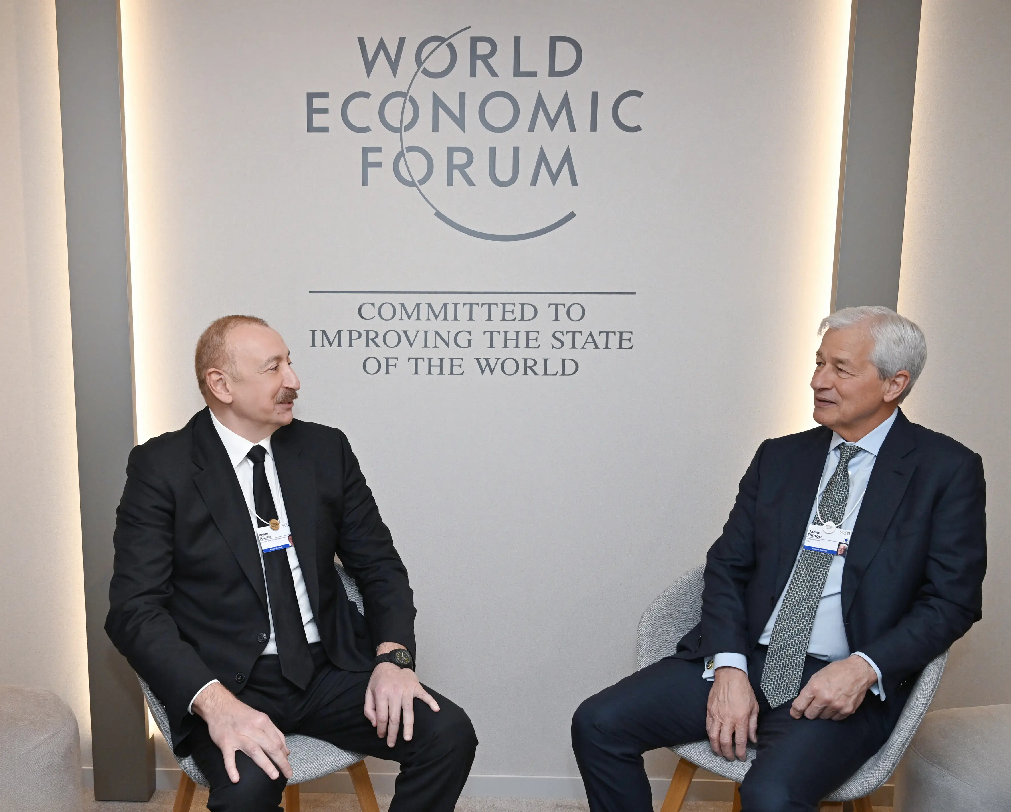 Yanvarın 20-də Davosda Azərbaycan Respublikasının Prezidenti İlham Əliyev dünyanın aparıcı qlobal maliyyə institutlarından biri olan Amerika Birləşmiş Ştatlarının “J.P. Morgan” şirkətinin sədri və baş icraçı direktoru Ceymi Daymon ilə görüşüb.