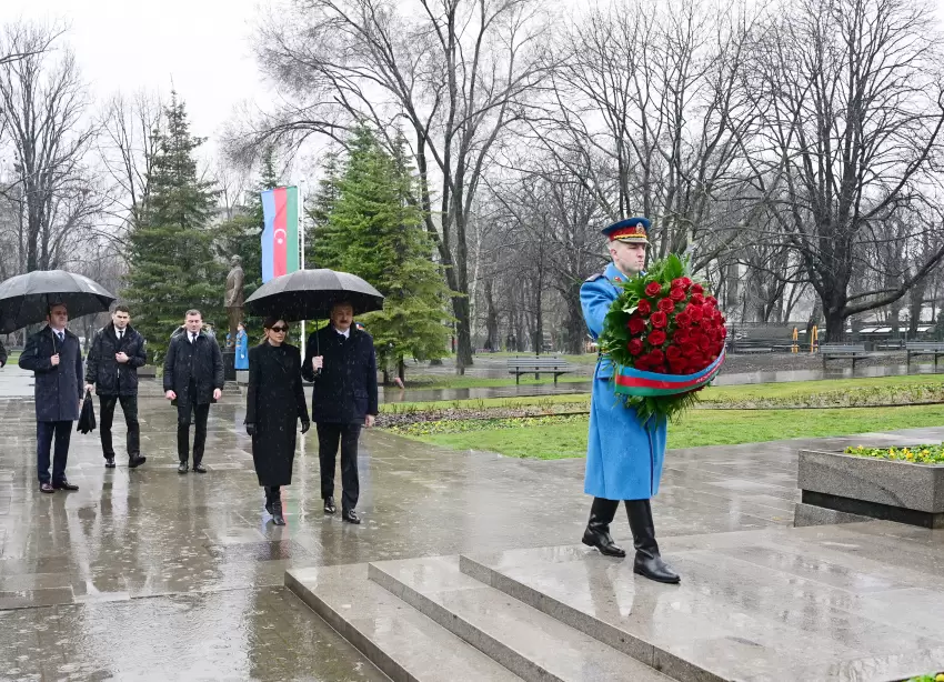 "PostMedia" xəbər verir ki, dövlətimizin başçısı abidələrin önünə əklil qoydu.