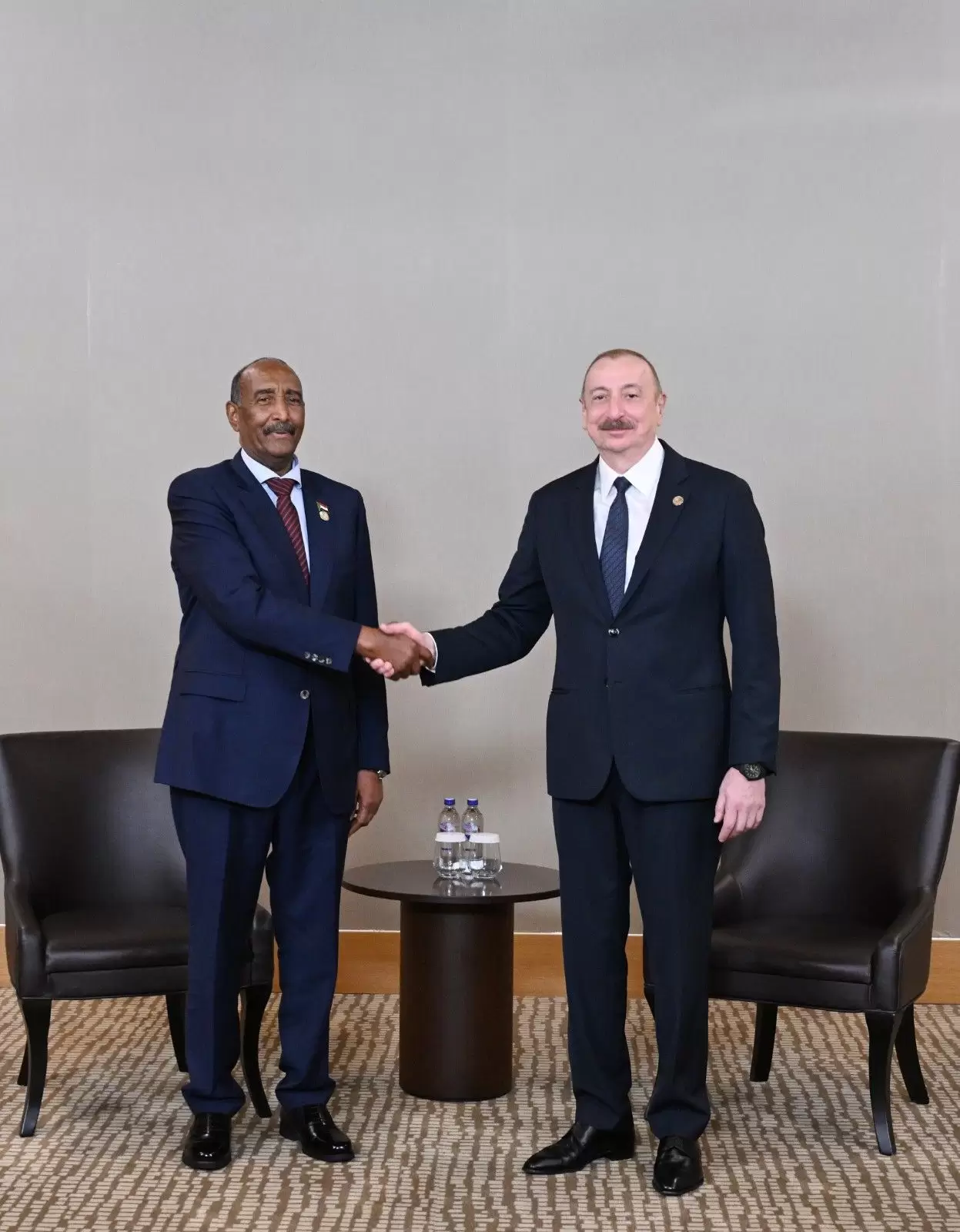 Abdel Fattah Al-Burhan Abdelrahman Al-Burhan Sudanın Azərbaycanla müxtəlif sahələrdə əlaqələrin inkişafına mühüm əhəmiyyət verdiyini dedi və ölkələrimiz arasında mədən sənayesi, neft, energetika, infrastruktur, investisiyalar və digər istiqamətlərdə əməkdaşlıq üçün yaxşı imkanların olduğunu qeyd etdi.