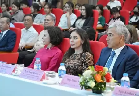 "PostMedia" xəbər verir ki, Hanoy Ticarət və Turizm Kollecində Leyla Əliyeva yaradıcı sənaye nümayəndələri və təhsil müəssisələrinin liderləri, eləcə də sovet dövründə Azərbaycanda təhsil almış vyetnamlı məzunlar ilə görüşüb.