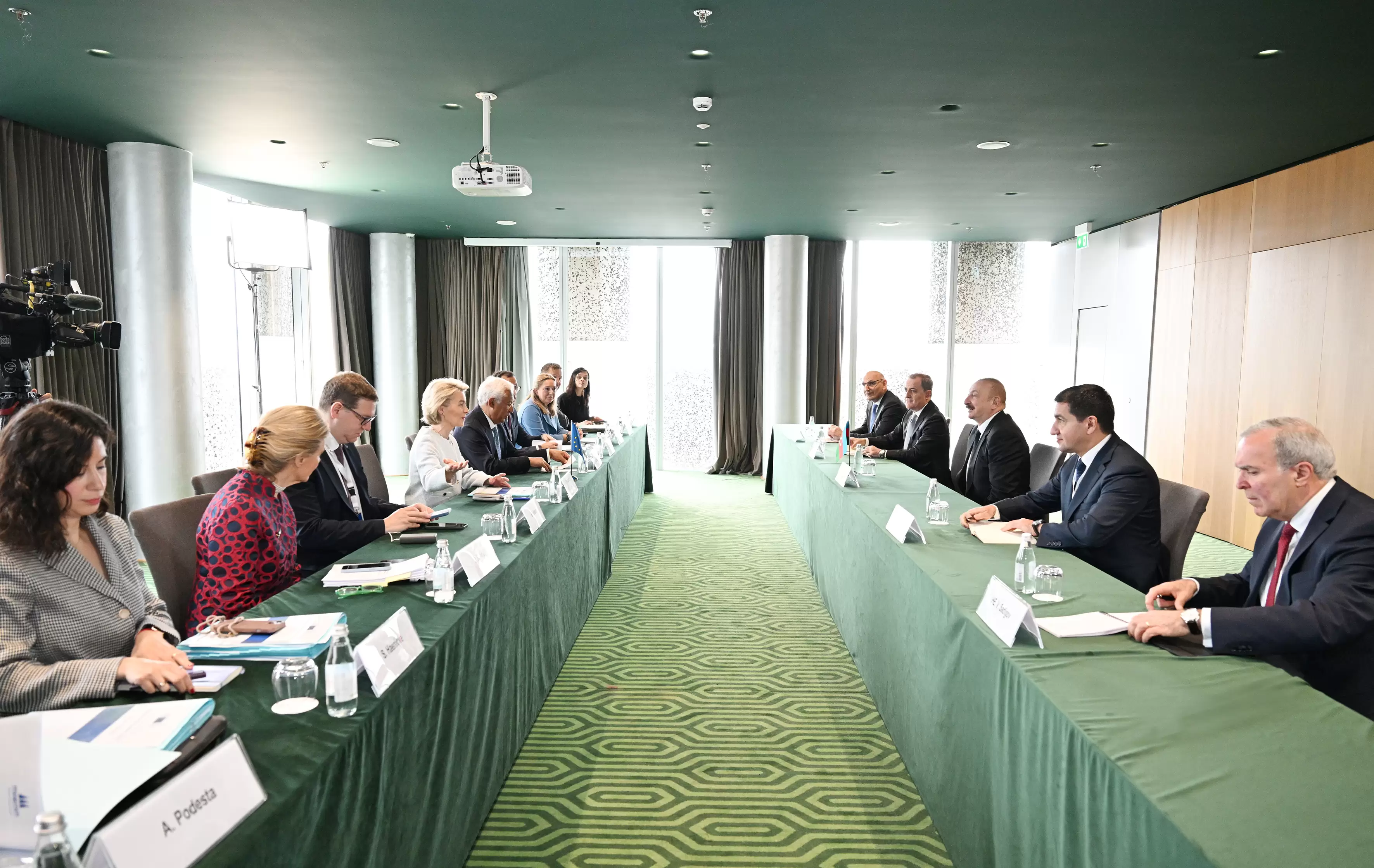 Prezident İlham Əliyev Azərbaycanın Avropa İttifaqı ilə əlaqələrə mühüm əhəmiyyət verdiyini deyərək, ölkəmizin Avropanın enerji təhlükəsizliyində roluna toxundu. Dövlətimizin başçısı ölkəmizlə Avropa İttifaqı arasında enerji sahəsində əməkdaşlığın genişləndirilməsi üçün böyük perspektivlərin olduğunu dedi, bu gün Avropanın 10, o cümlədən Avropa İttifaqının 8 ölkəsinin enerji təminatında Azərbaycanın rolunu vurğuladı.