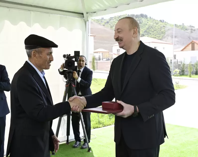 Dövlətimizin başçısı sakin Vahid Cəmilova təbriklərini çatdıraraq ona açarları təqdim etdi.