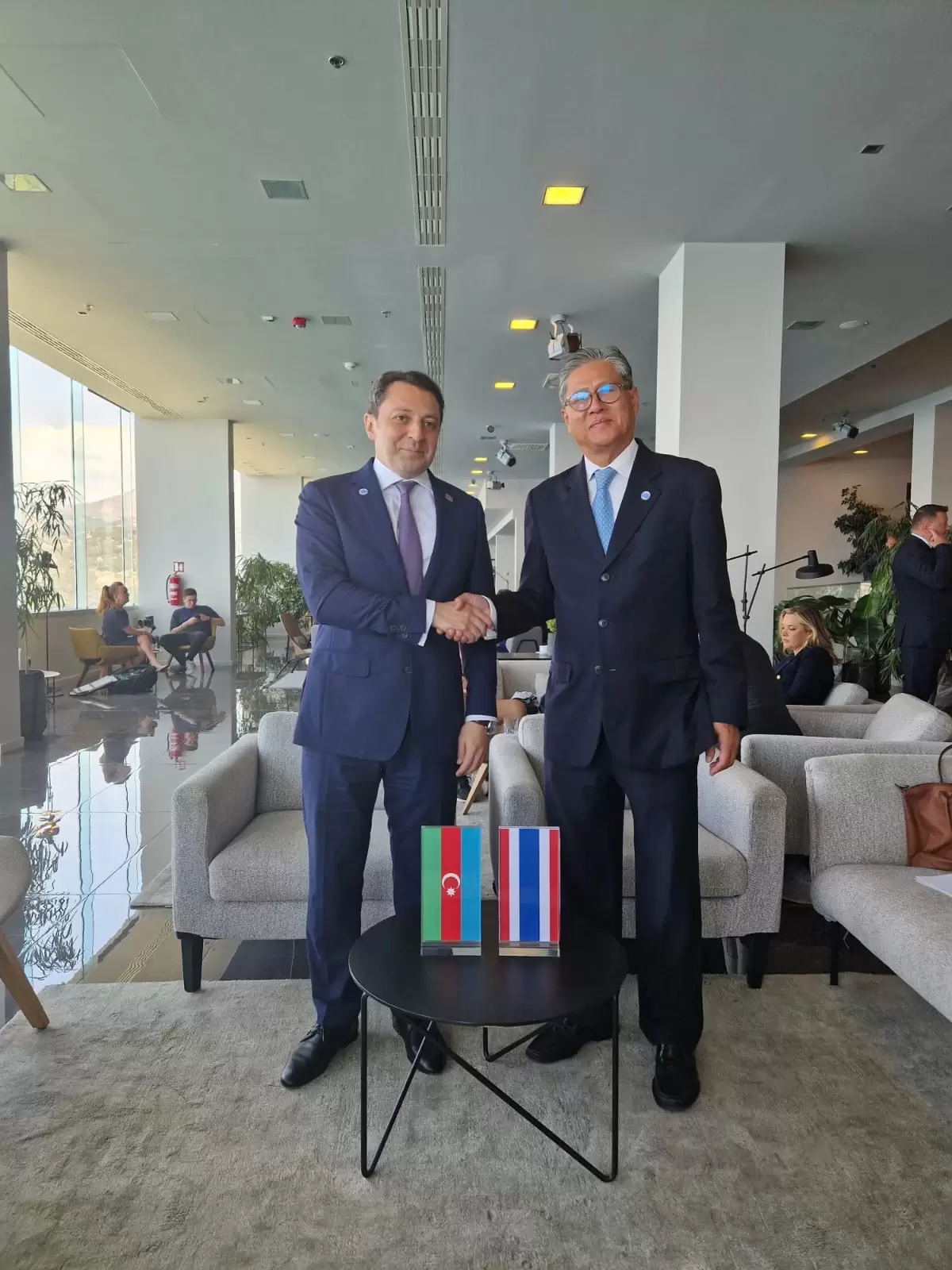 Bununla yanaşı, Tayland Krallığının xarici işlər nazirinin müavini Russ Jaliçandra ilə keçirilmiş görüş zamanı Azərbaycan və Tayland arasında ikitərəfli münasibətlərin mövcud vəziyyəti və genişləndirilməsi perspektivləri ətrafında fikit mübadiləsi aparılıb. İqtisadi, mədəni və humanitar sahələrdə əməkdaşlığın inkişaf etdirilməsi, həmçinin çoxtərəfli platformalarda qarşılıqlı dəsdək məsələləri nəzərdən keçirilib.