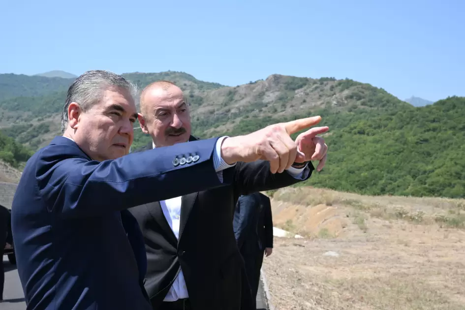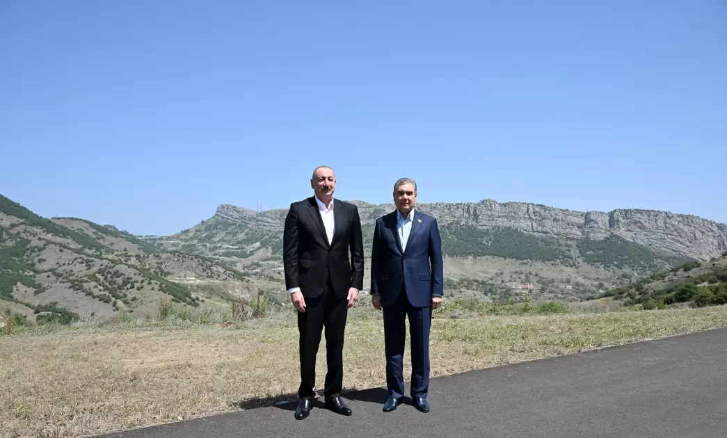 Prezident İlham Əliyev və Qurbanqulu Berdiməhəmmədov Şuşa rayonunun Daşaltı kəndinin fonunda şəkil çəkdiriblər