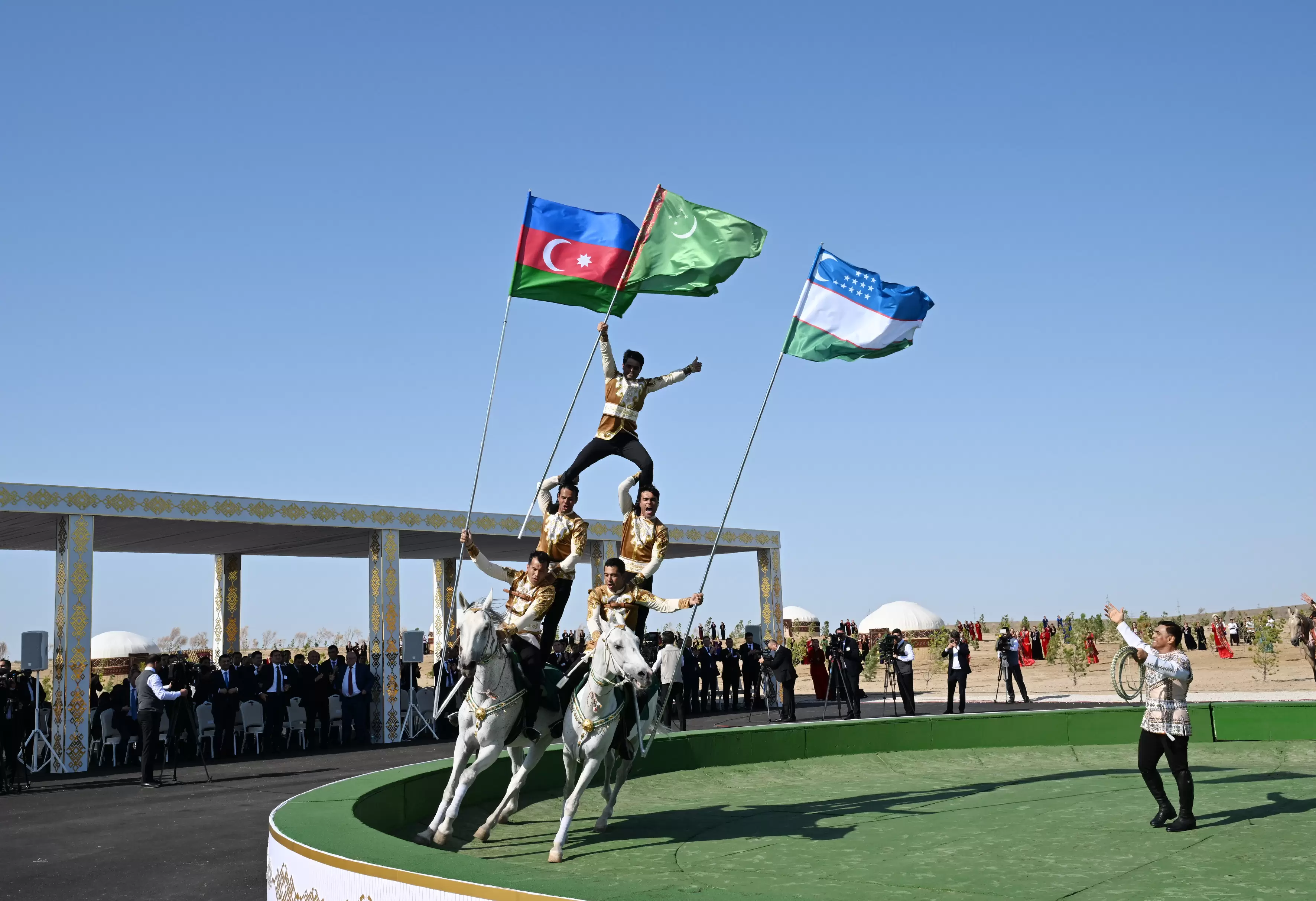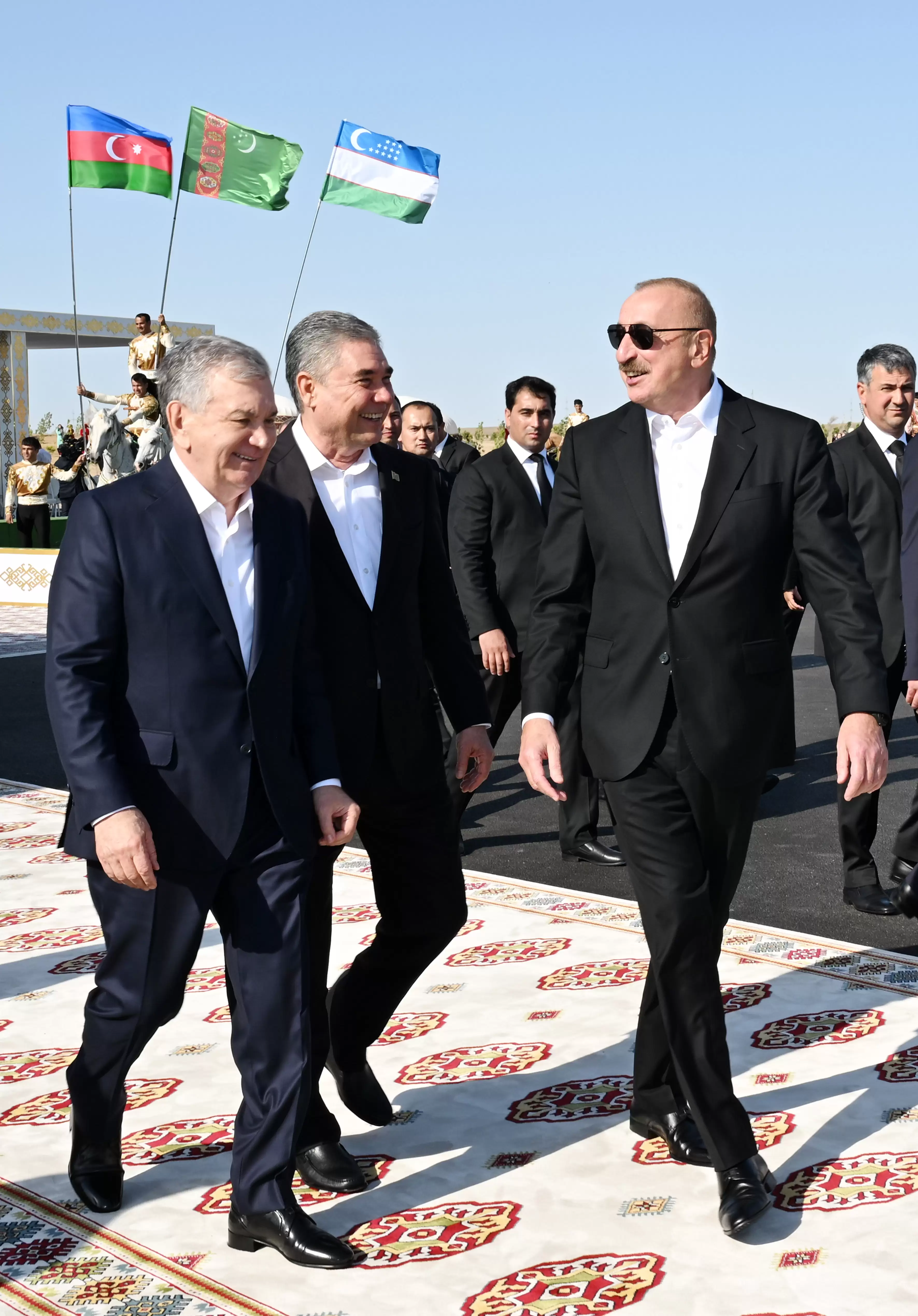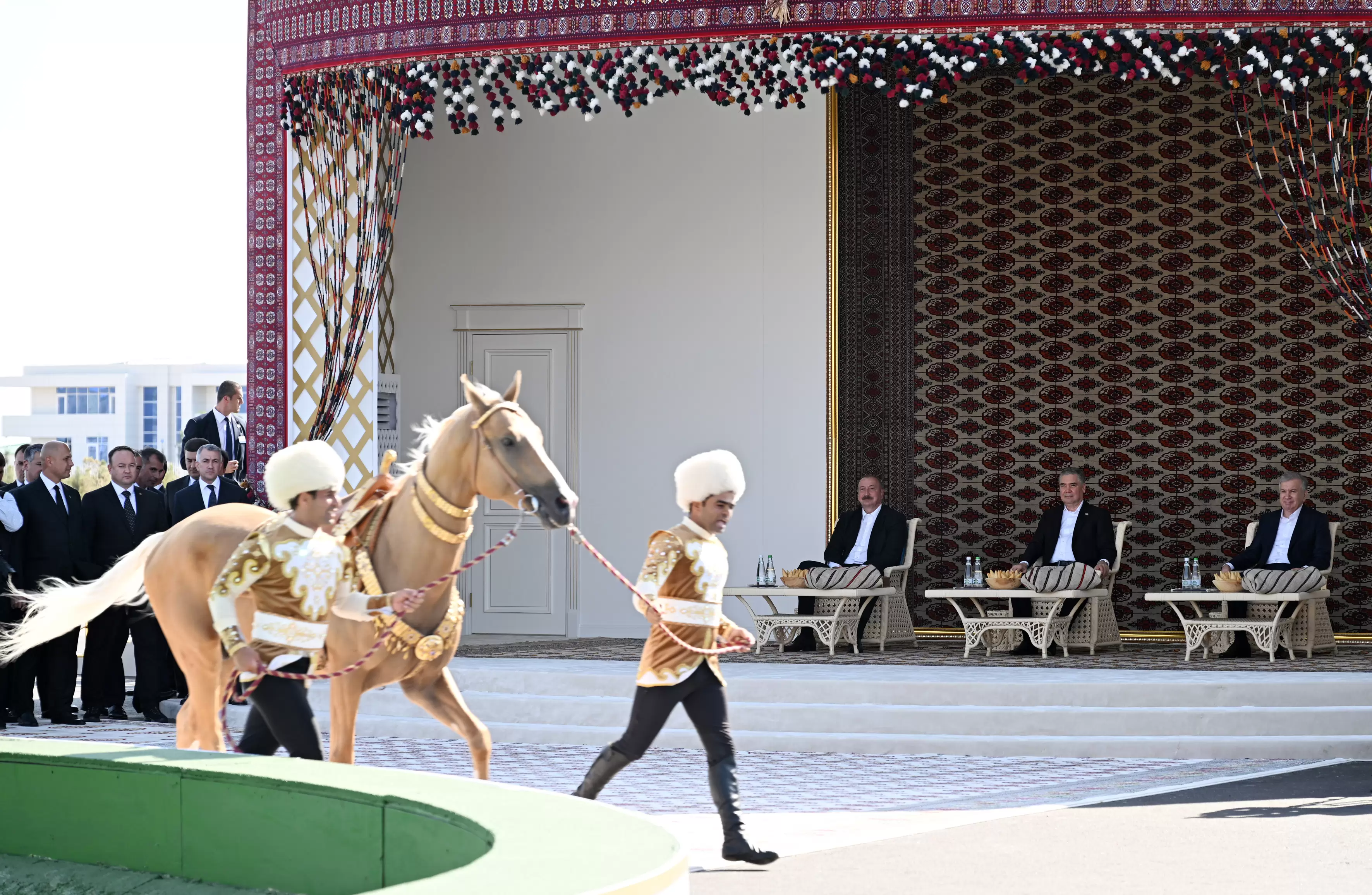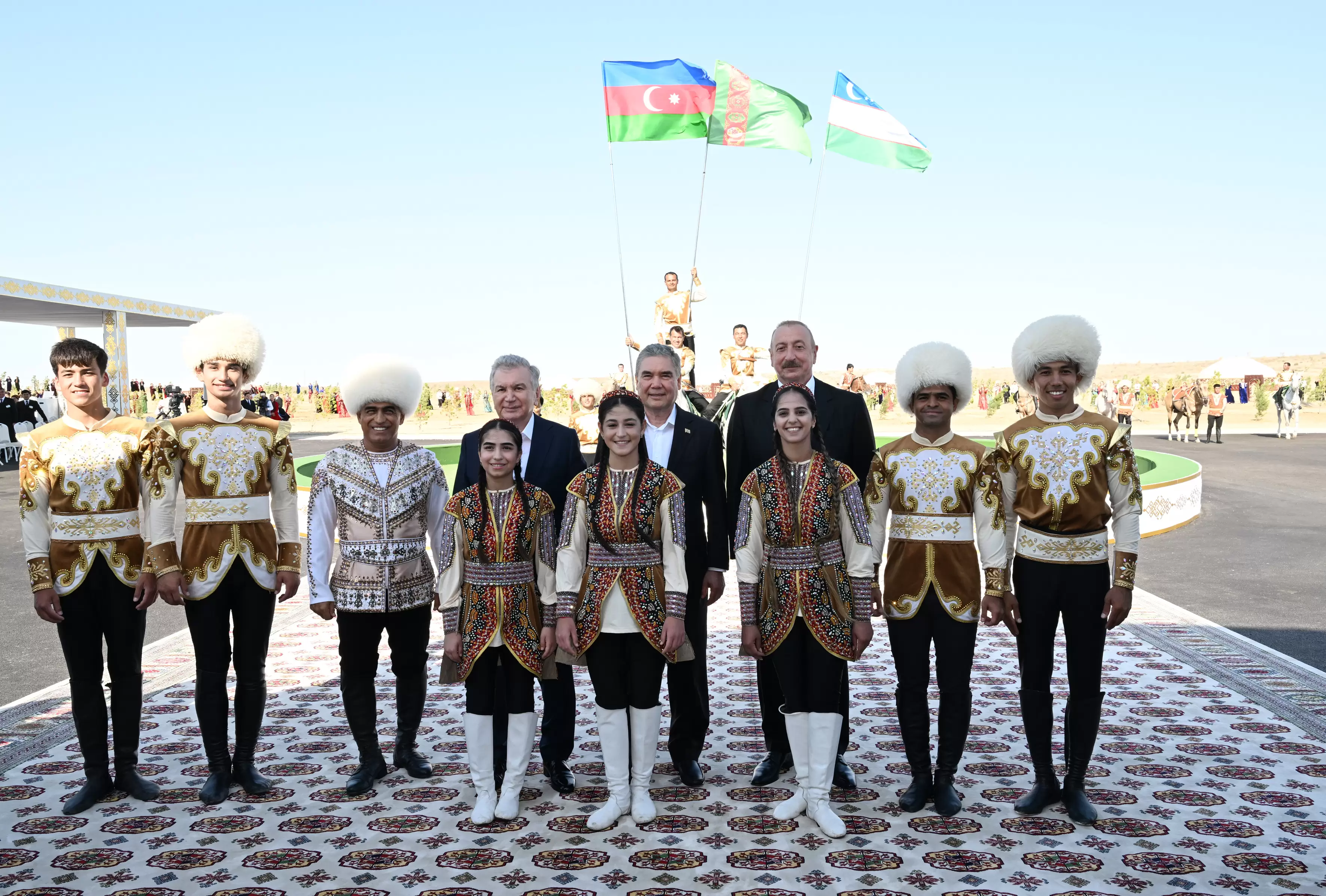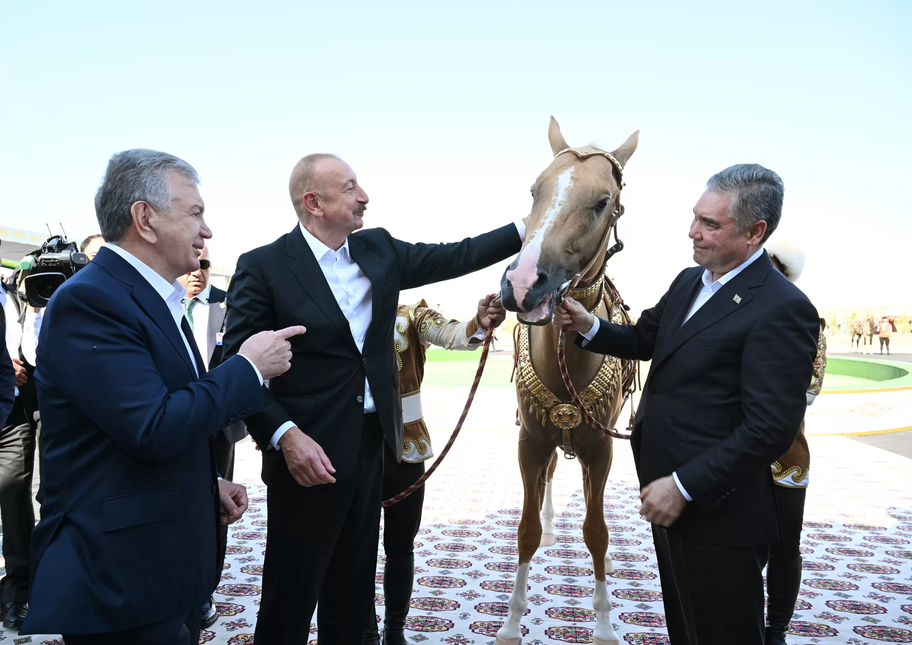 Avqustun 22-də Azərbaycan Respublikasının Prezidenti İlham Əliyev, Türkmənistan Xalq Məsləhətinin sədri Qurbanqulu Berdiməhəmmədov və Özbəkistan Respublikasının Prezidenti Şavkat Mirziyoyev Türkmənbaşı şəhərində “Axaltəkə” atlarına və milli “Galkynysh” atlı qrupunun çıxışına baxıblar.