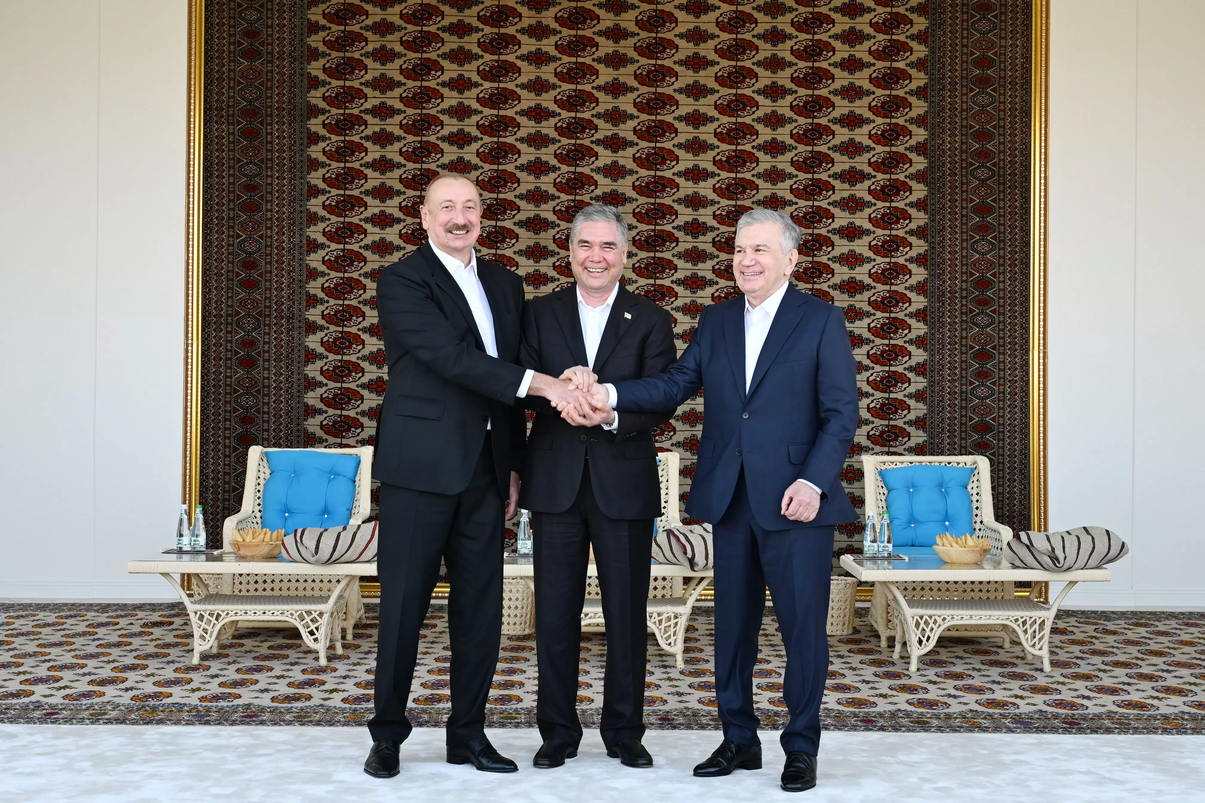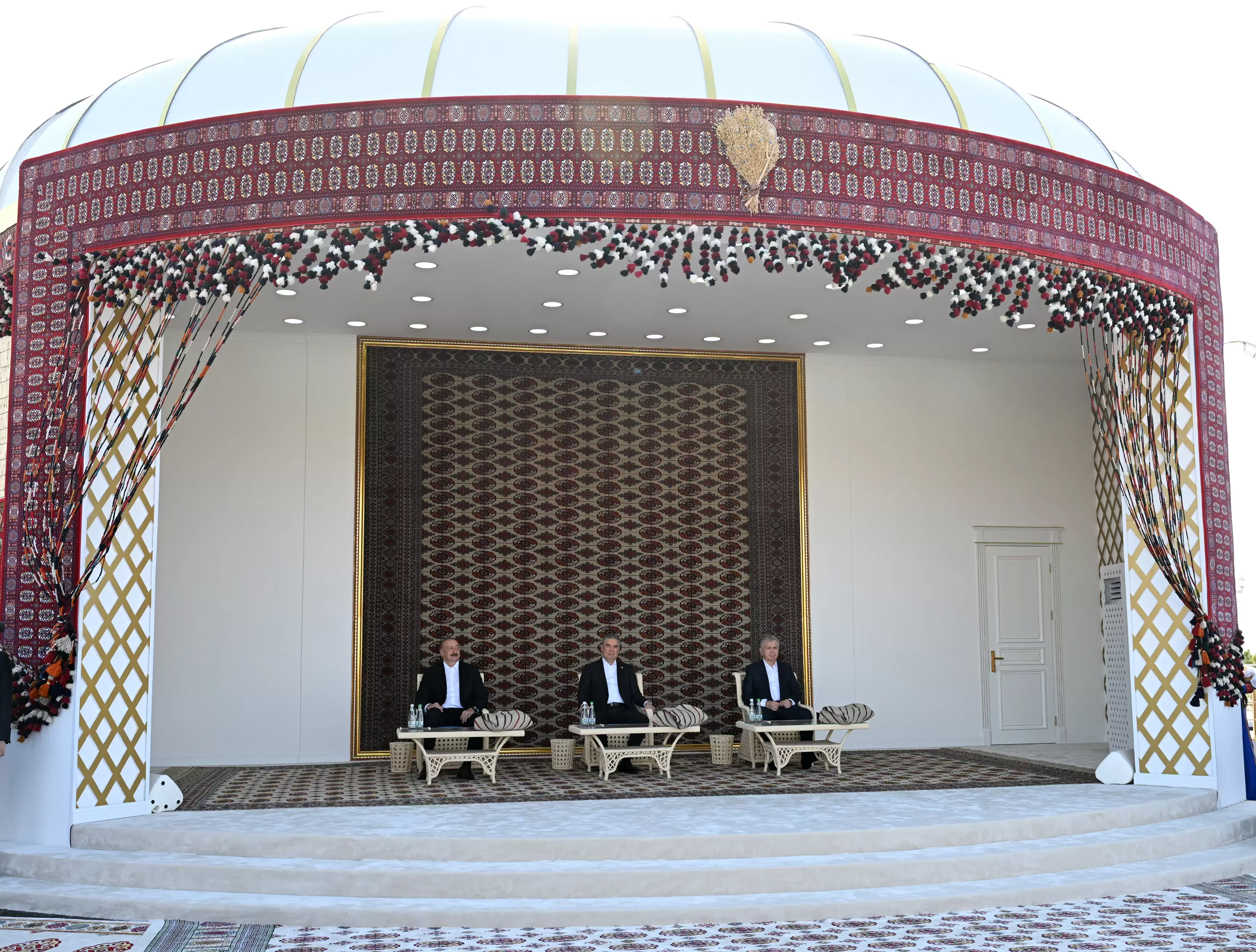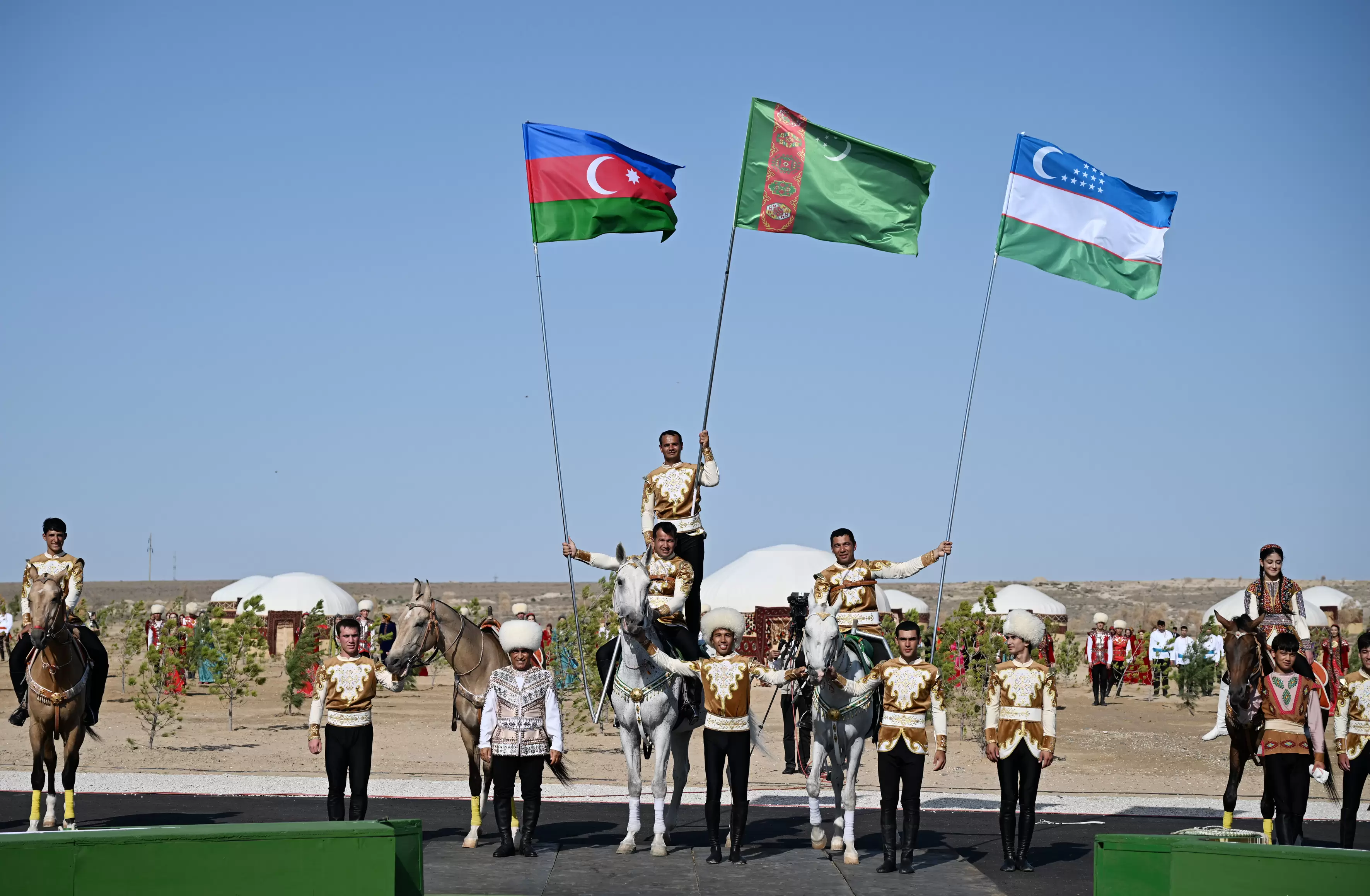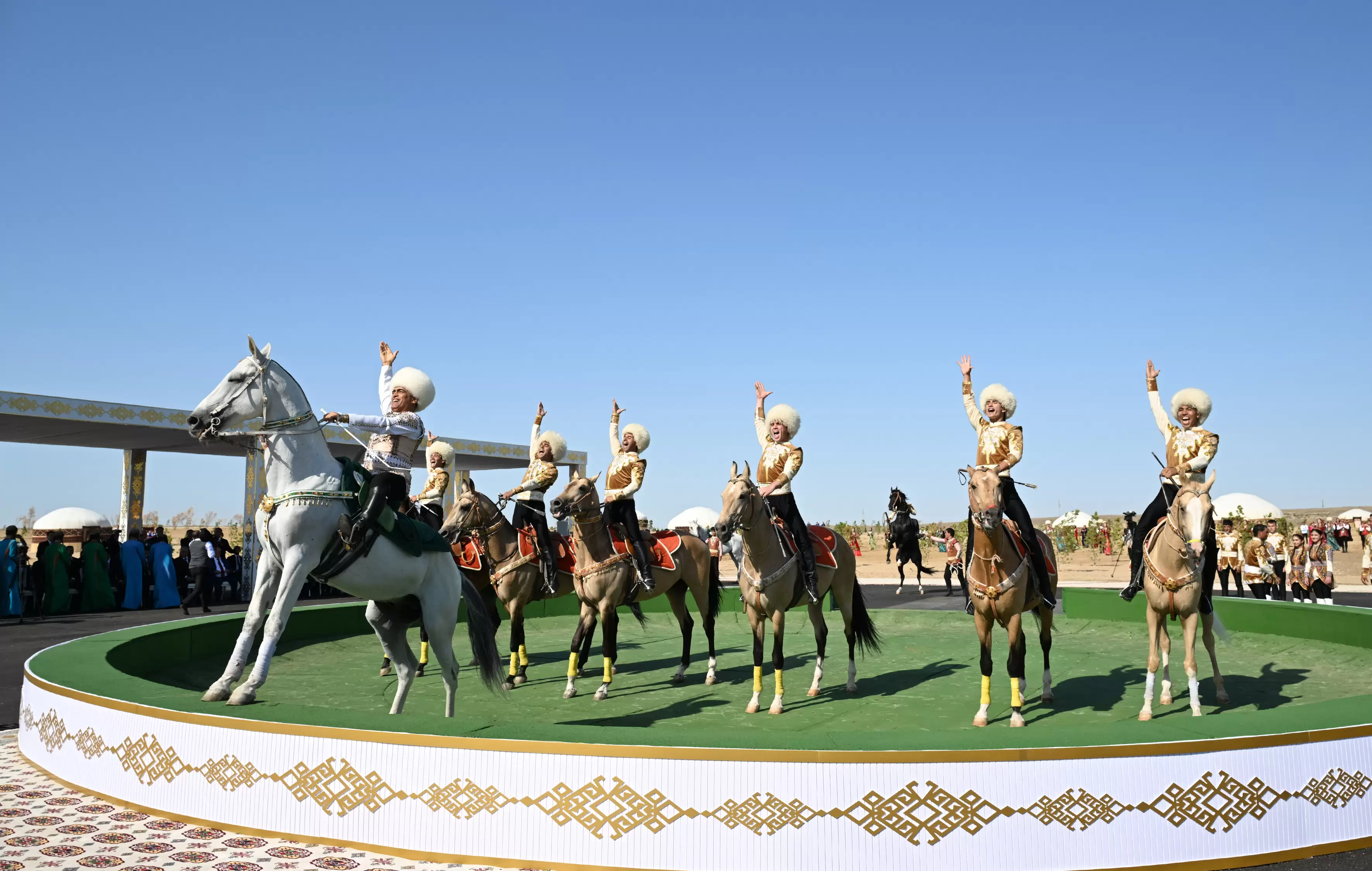 Avqustun 22-də Azərbaycan Respublikasının Prezidenti İlham Əliyev, Türkmənistan Xalq Məsləhətinin sədri Qurbanqulu Berdiməhəmmədov və Özbəkistan Respublikasının Prezidenti Şavkat Mirziyoyev Türkmənbaşı şəhərində “Axaltəkə” atlarına və milli “Galkynysh” atlı qrupunun çıxışına baxıblar.