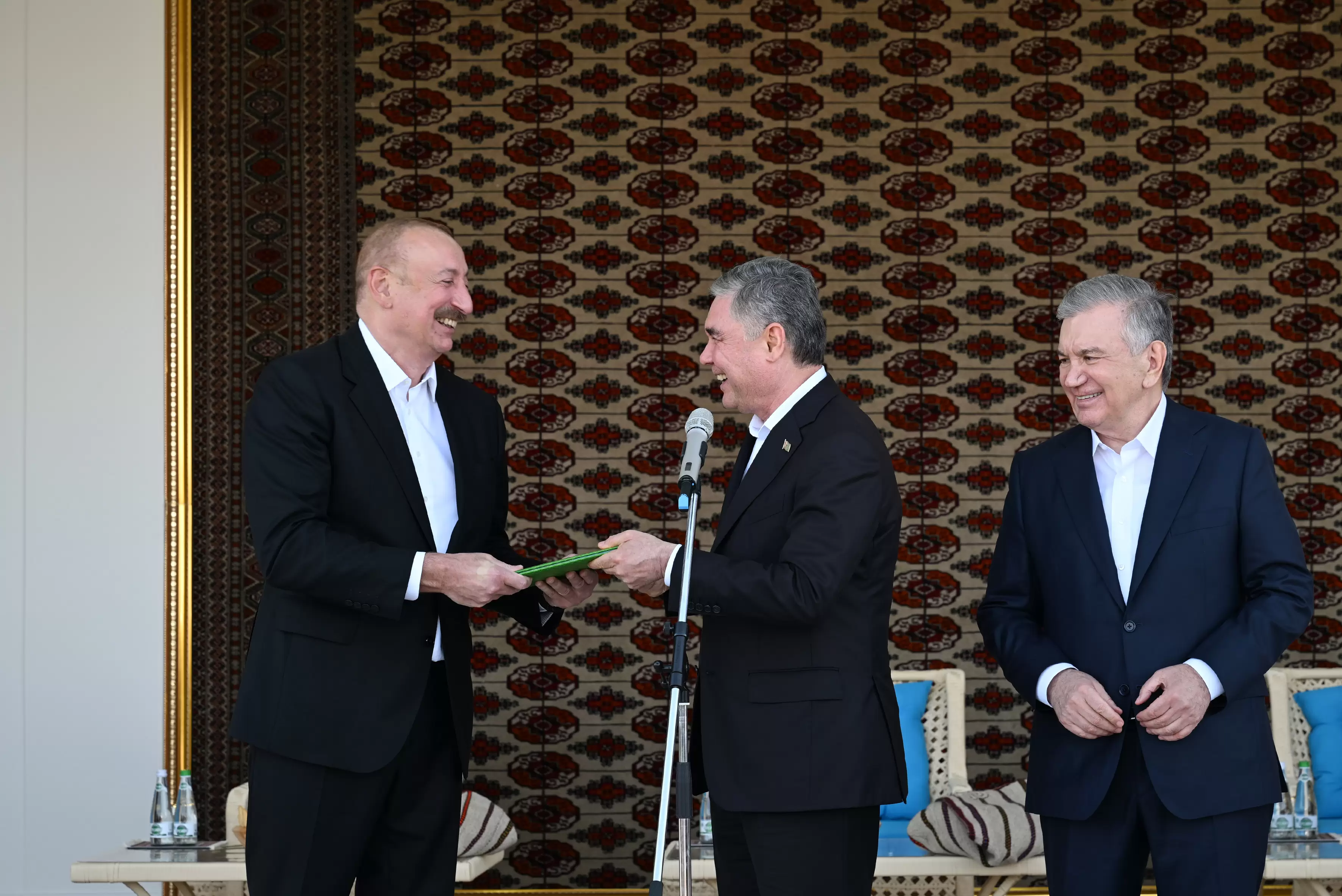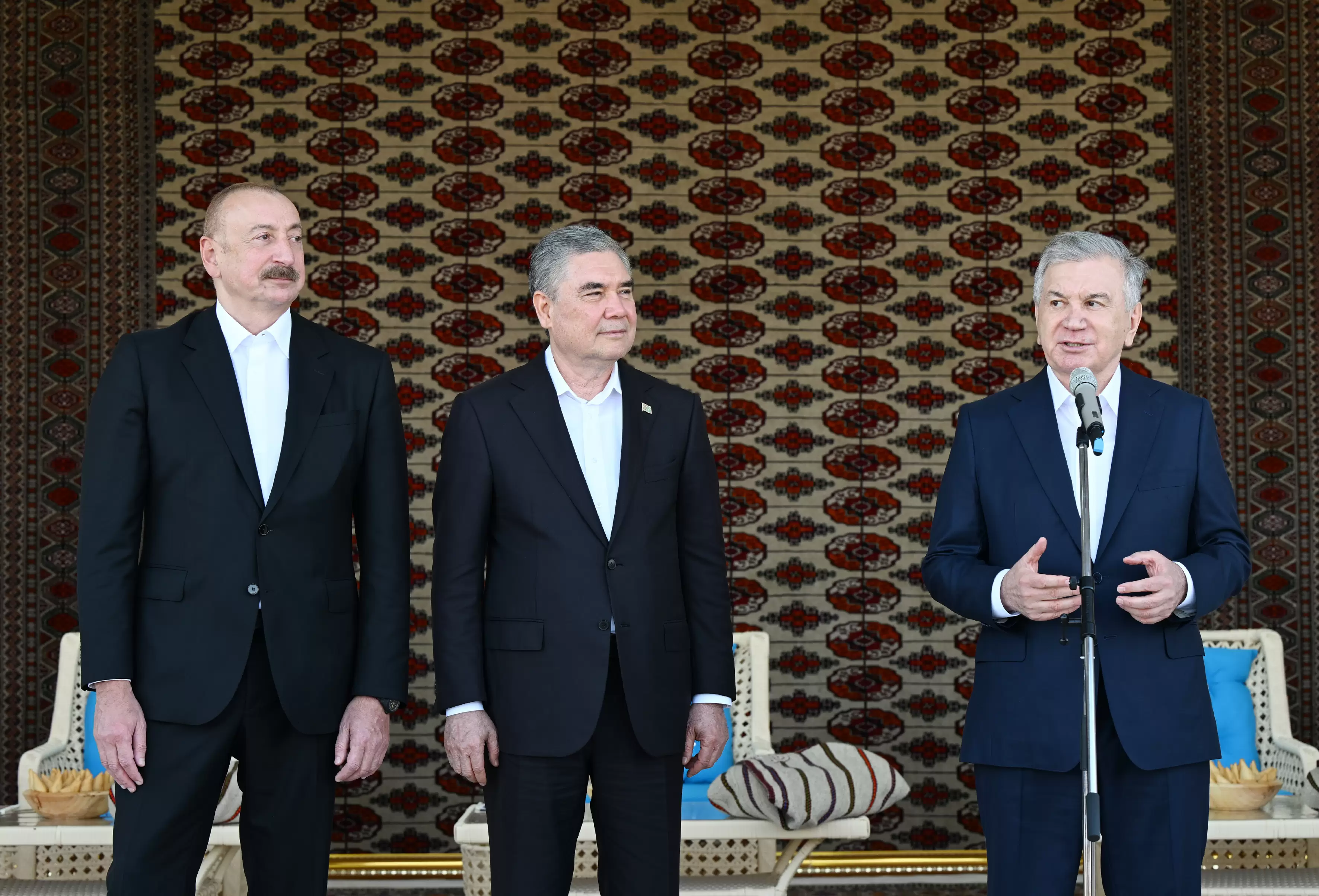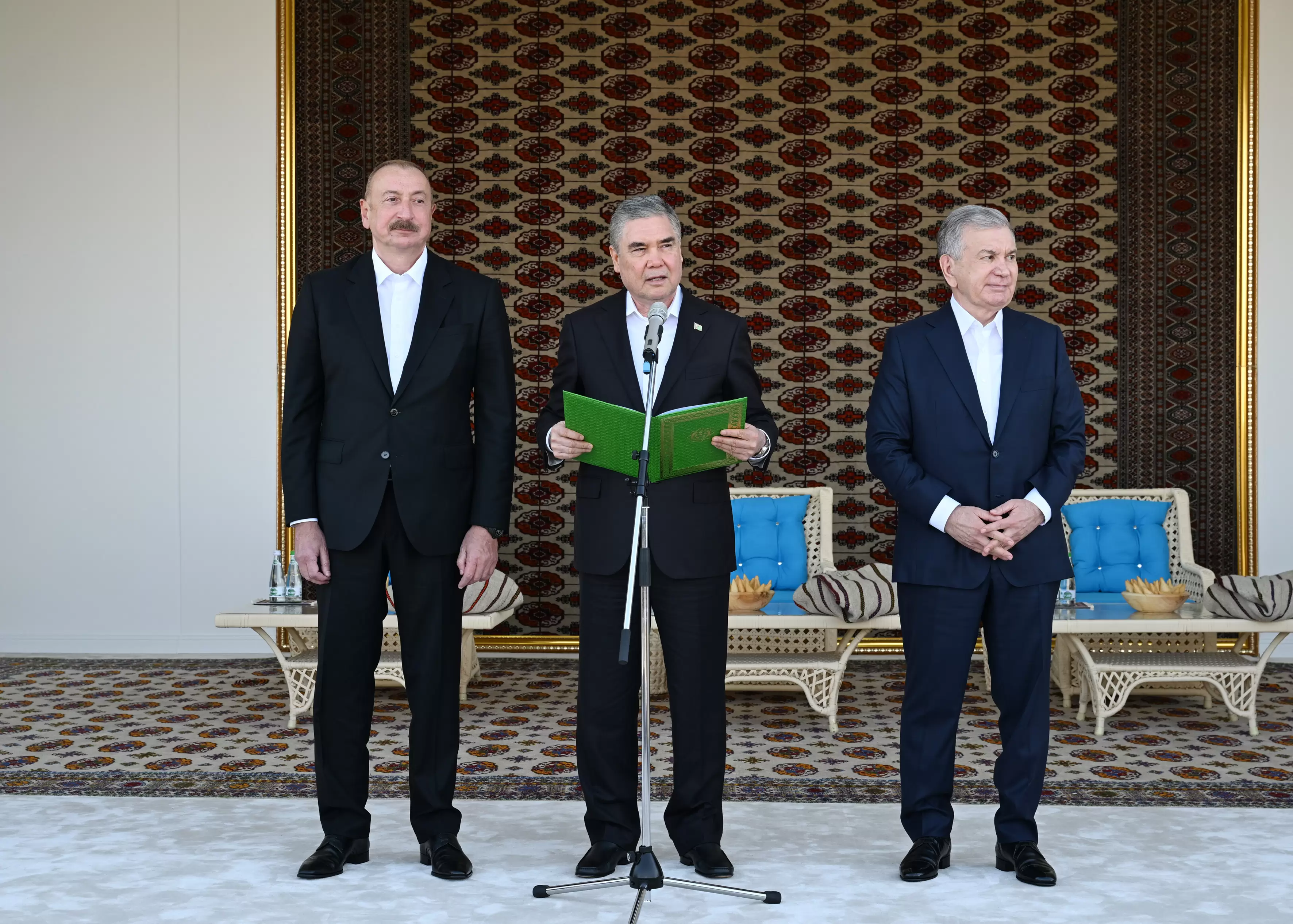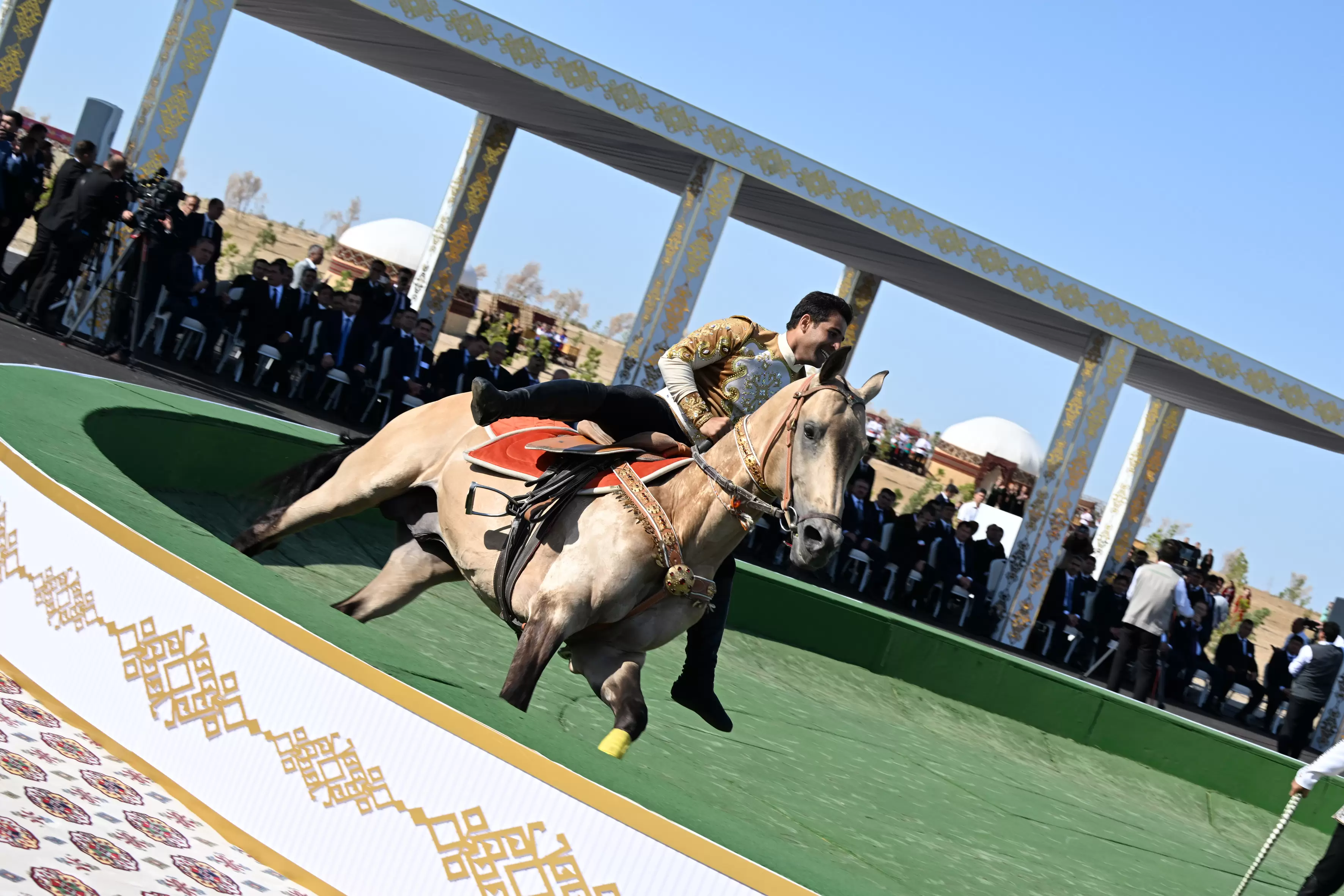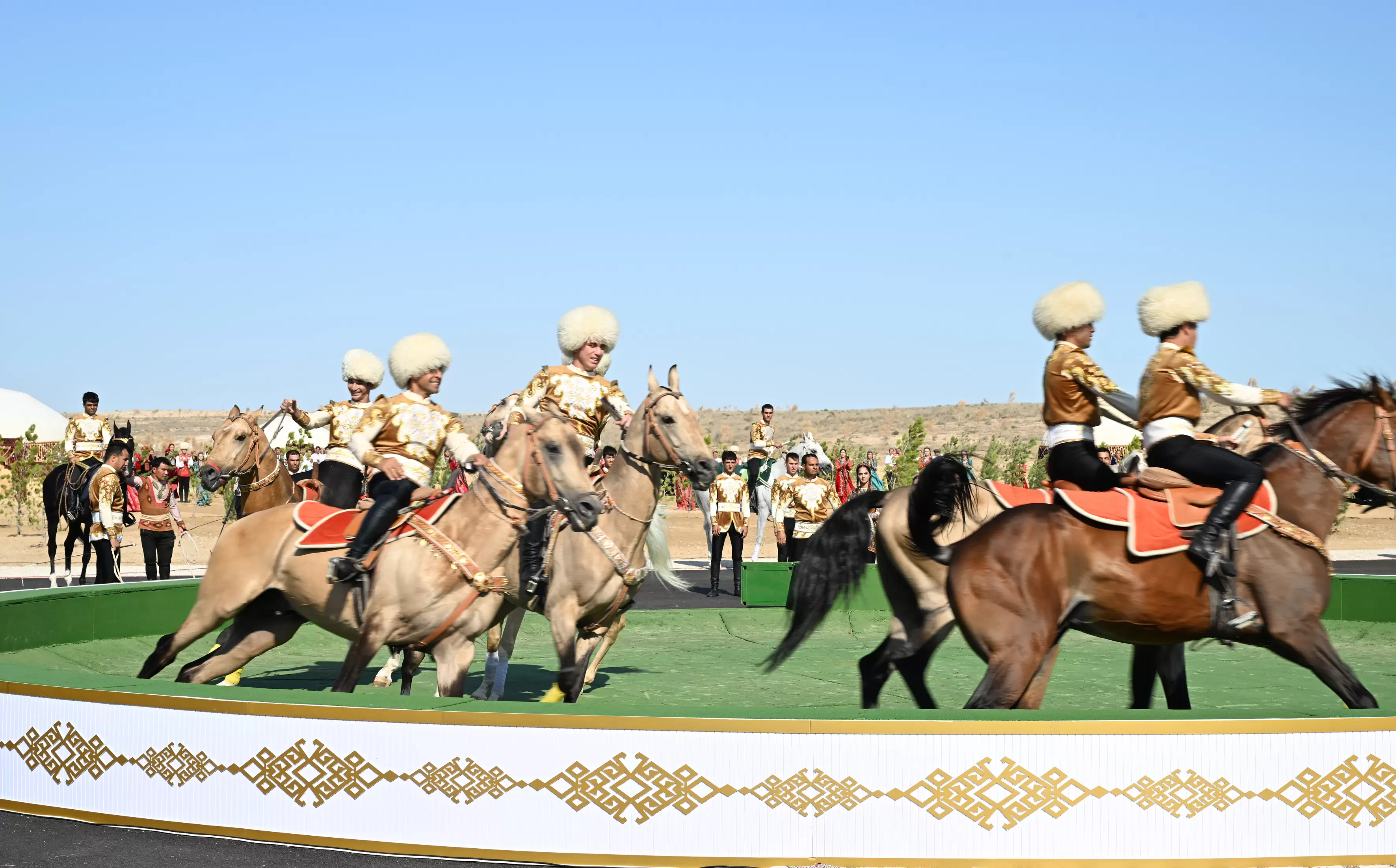 Avqustun 22-də Azərbaycan Respublikasının Prezidenti İlham Əliyev, Türkmənistan Xalq Məsləhətinin sədri Qurbanqulu Berdiməhəmmədov və Özbəkistan Respublikasının Prezidenti Şavkat Mirziyoyev Türkmənbaşı şəhərində “Axaltəkə” atlarına və milli “Galkynysh” atlı qrupunun çıxışına baxıblar.