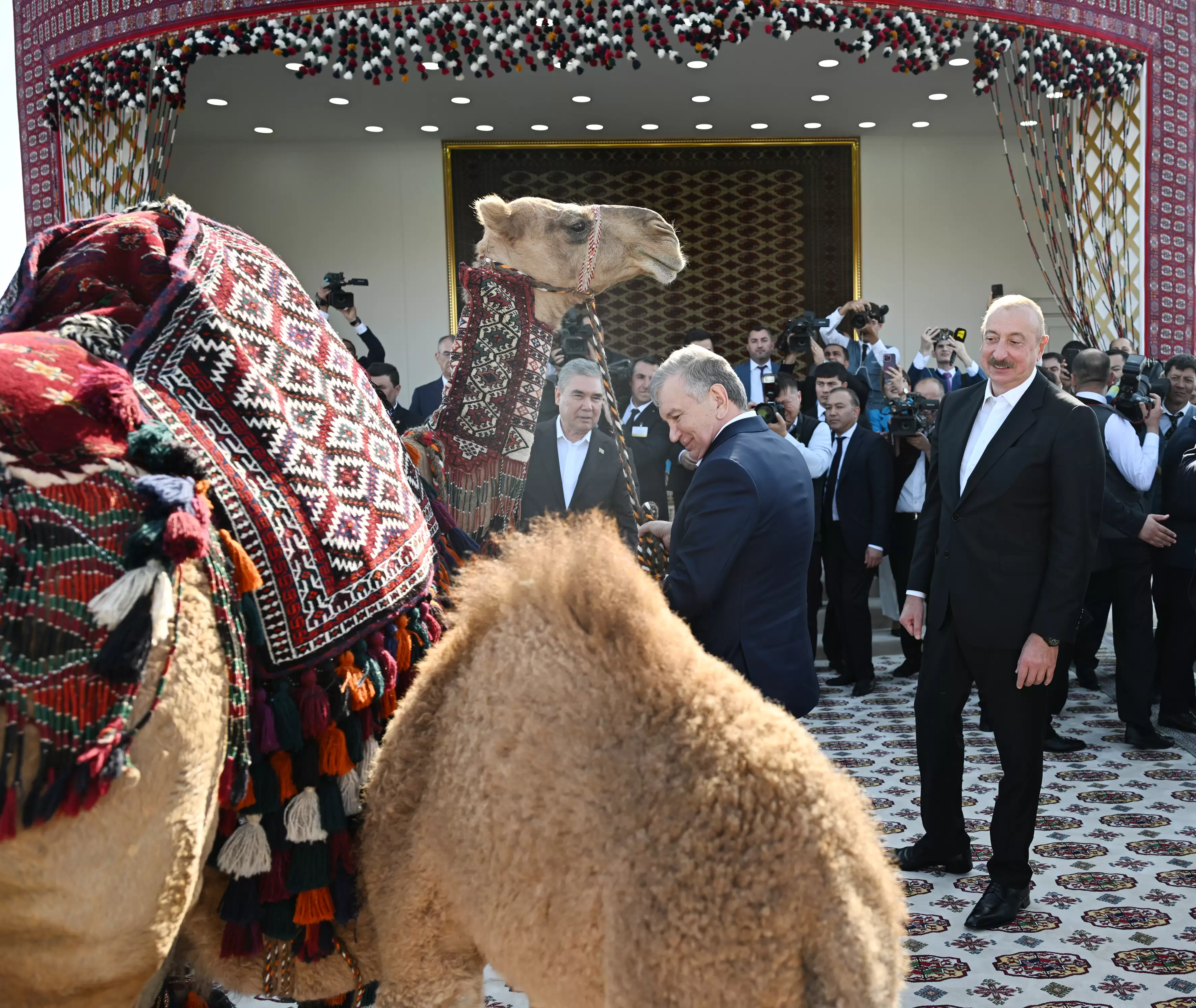 Daha sonra Xalq Məsləhətinin sədri Qurbanqulu Berdiməhəmmədov Türkmənistan Prezidenti Sərdar Berdiməhəmmədovun və türkmən xalqının adından Özbəkistan Prezidenti Şavkat Mirziyoyevə dəvə hədiyyə edib.