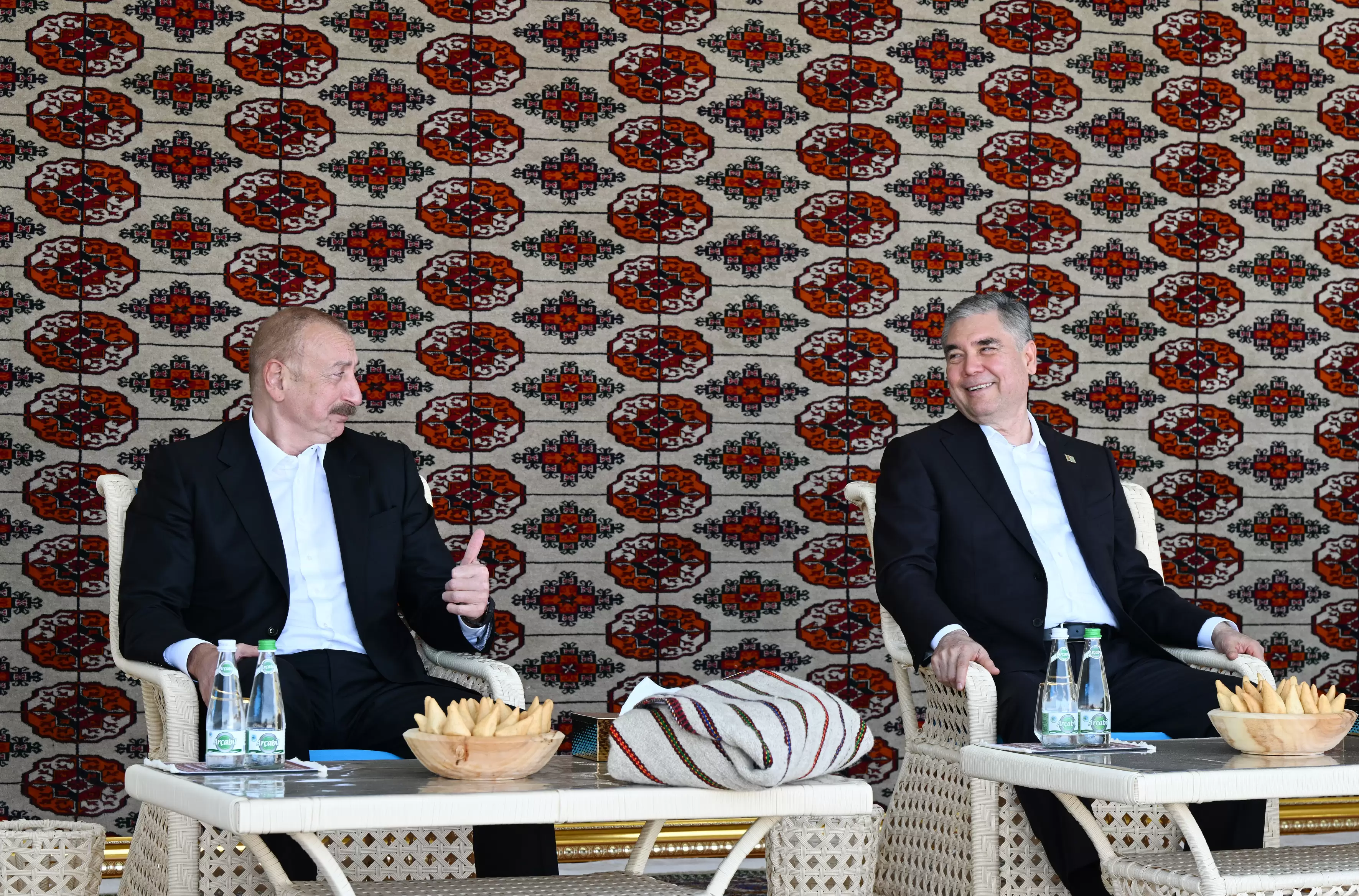 Prezident İlham Əliyev dedi: Əziz qardaşım Qurbanqulu Məlikquliyeviçə bu gözəl hədiyyəyə görə dərin minnətdarlığını bildirmək istəyirəm. “Axaltəkə” atı dünyada məşhurdur, türkmən xalqının, Türkmənistanın milli brendidir. Bütün cahanda gözəl ada layiq olan bir atdır və bu hədiyyə dostluq, qardaşlıq rəmzidir. Onu da deməliyəm ki, bildiyimiz kimi, türkmən və Azərbaycan xalqları qardaş xalqlardır. Eyni zamanda, bizi birləşdirən odur ki, həm türkmənlərin, həm də azərbaycanlıların öz at cinsi var - “Axaltəkə” və Qarabağ. Necə ki, biz qardaşıq, onlar da qardaşdırlar. Bir daha təşəkkür edirəm. Burada gözəl at şousunu bizə nümayiş etdirən igidlərimizə də dərin minnətdarlığımı bildirirəm. Afərin olsun sizə.