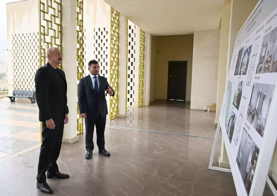 Prezident İlham Əliyevə qəsəbədə inşa edilmiş məscid barədə də məlumat verildi.