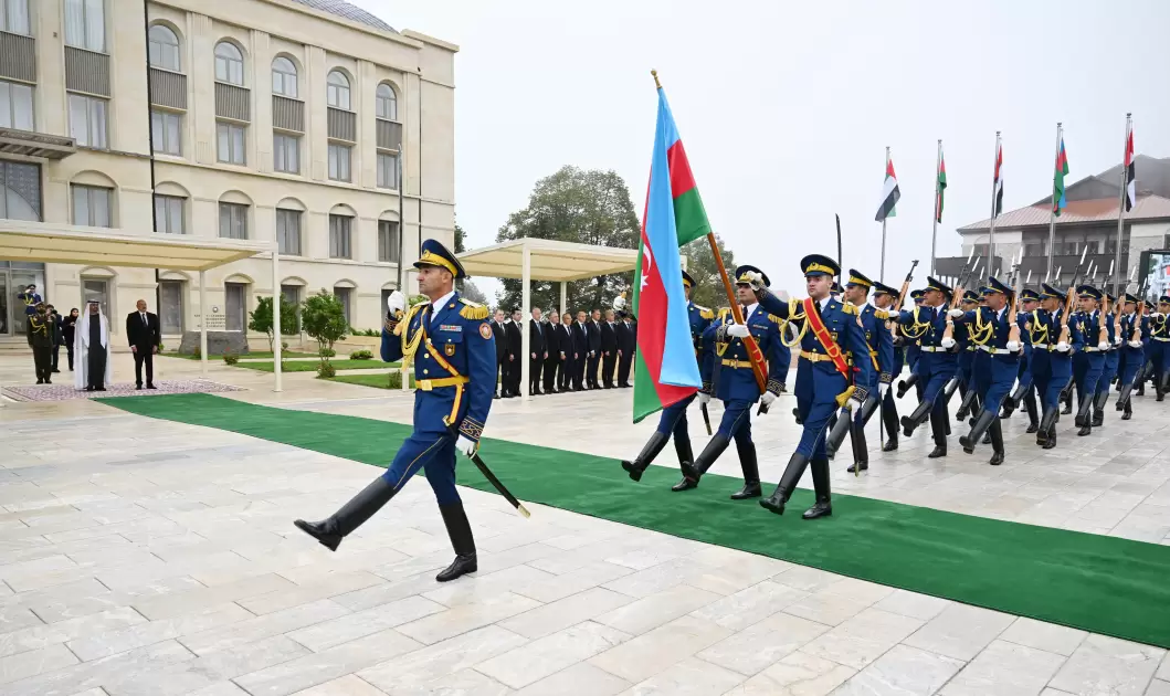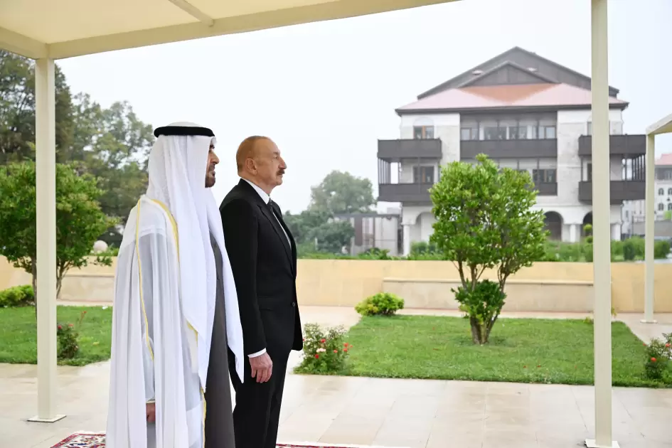 Azərbaycan Respublikasının Prezidenti İlham Əliyev və Birləşmiş Ərəb Əmirliklərinin Prezidenti Şeyx Məhəmməd bin Zayed Al Nəhyan fəxri qarovul dəstəsinin qarşısından keçdilər.