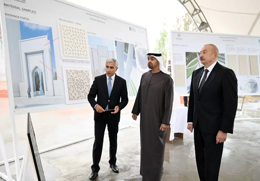 Azərbaycan Respublikasının Prezidenti İlham Əliyev və Birləşmiş Ərəb Əmirliklərinin Prezidenti Şeyx Məhəmməd bin Zayed Al Nəhyan sentyabrın 16-da Yeni Şuşa məscidində tikinti işlərinin gedişi ilə tanış olublar.