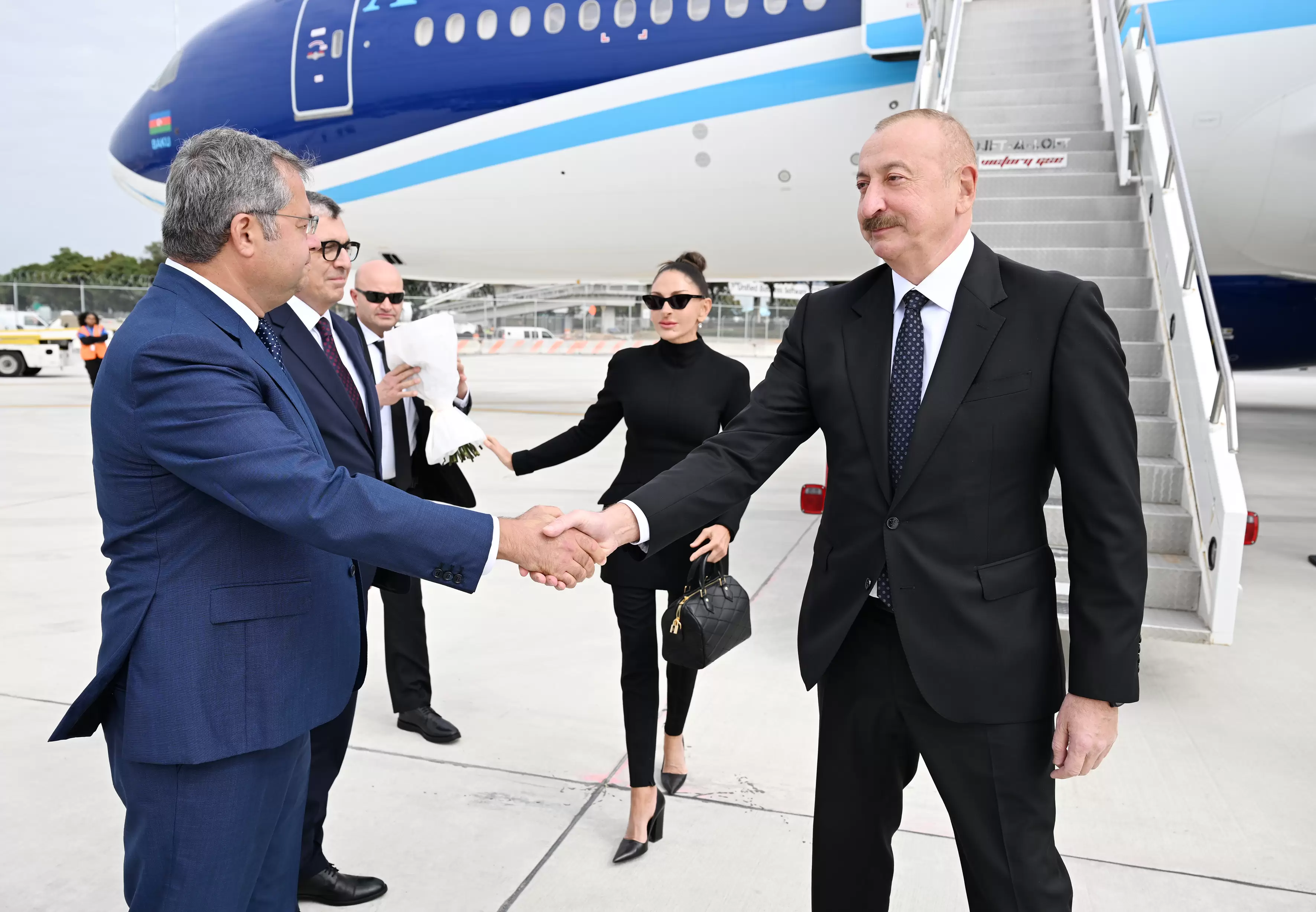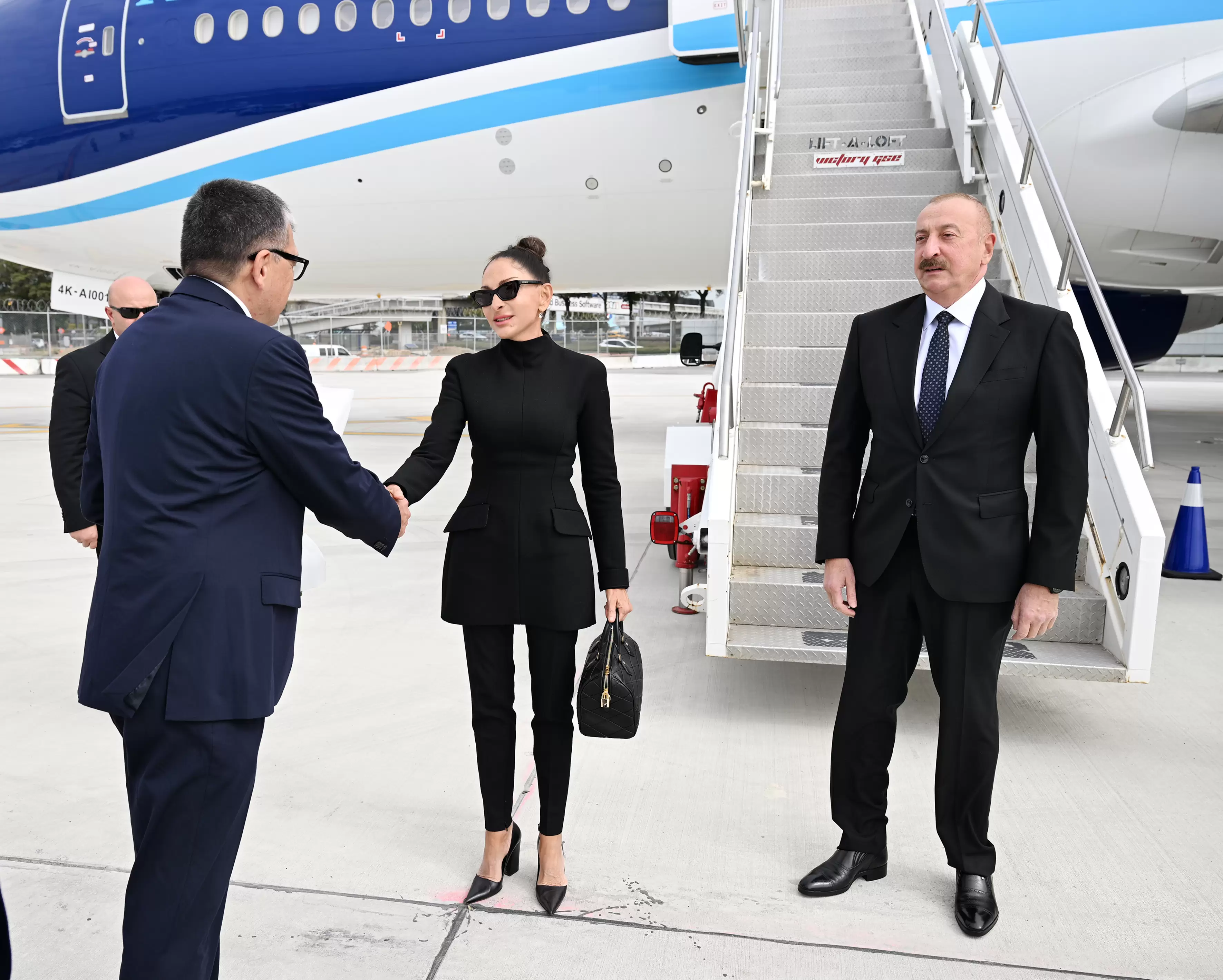 "PostMedia" xəbər verir ki, Prezident İlham Əliyevi və birinci xanım Mehriban Əliyevanı Nyu-York şəhərinin “John F.Kennedy” Beynəlxalq Hava Limanında rəsmi şəxslər qarşılayıblar.