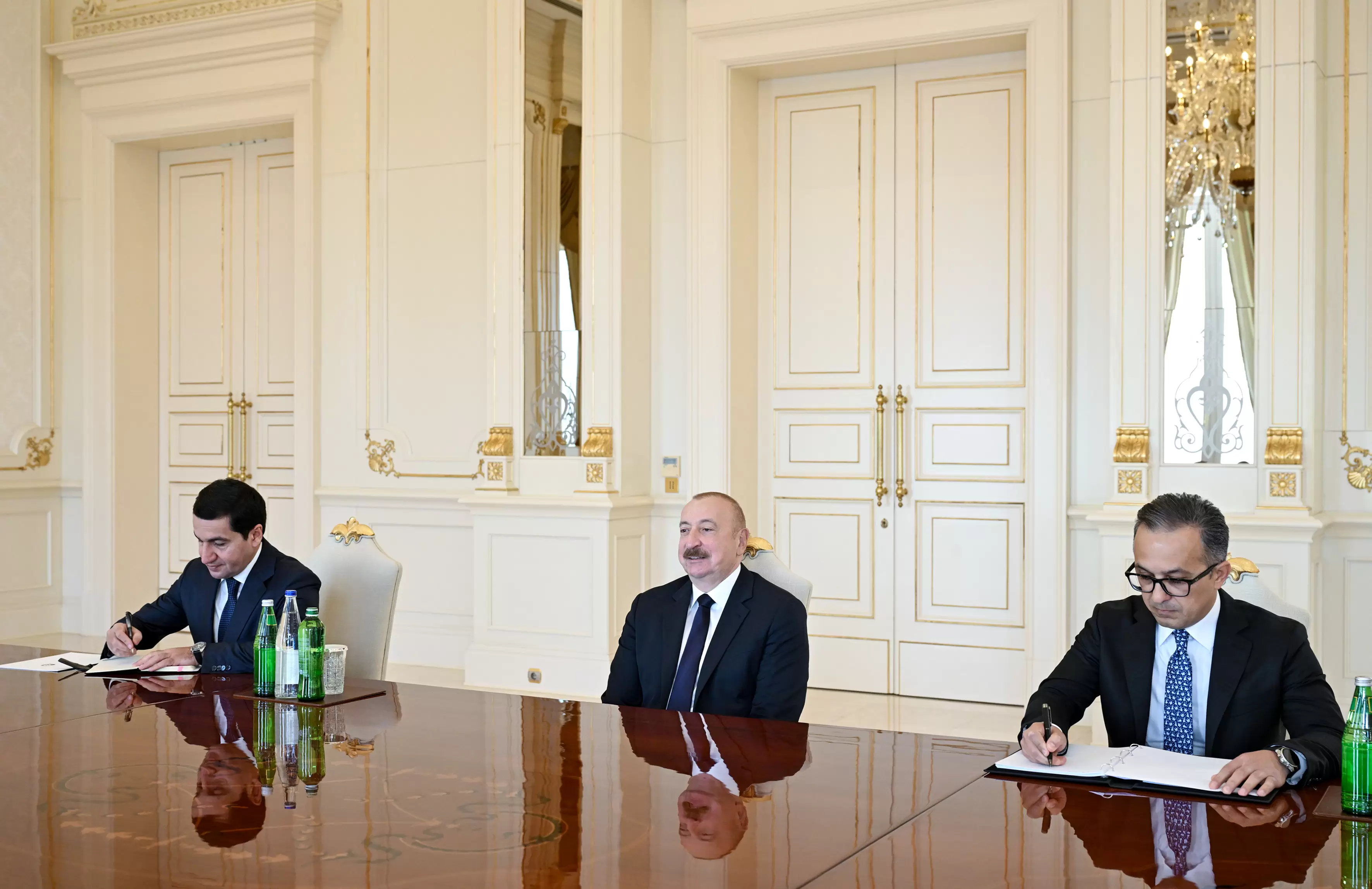 Qonaqlar ABŞ Prezidenti Donald Trampın şahidliyi ilə Azərbaycanla Ermənistan arasında sülh gündəliyinin irəli aparılması istiqamətində Vaşinqtonda əldə edilmiş nailiyyətlər münasibətilə təbriklərini çatdırdılar.